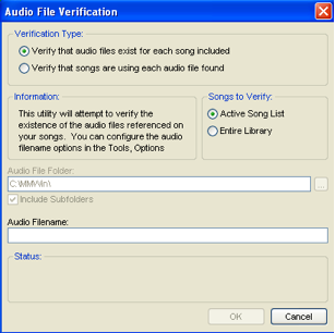 There is also a helpful utility found under Library-Audio-Verify in Library Maintenance that will allow you to check to make sure the pathing you’ve set up is correct and that the audio files can be found for each entry in the library you might wish to play.
