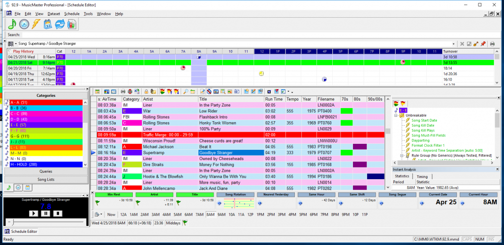 If you want to increase your TSL, you have to think beyond your song’s tempos and moods. We also have to consider the same for the items in between the records. We need to code tempo and mood for jingles, sweepers, and any other form of imaging. The majority of our radio listeners will listen to your station’s music in the background whether at work or on the road. If you schedule both your music and non-music items in MusicMaster, you have the ability to control the entire experience.  Your audience might stop listening when something grabs their attention like a loud sweeper. Also, an imaging piece that has too many explosions, production effects and segues into a slow intro or ballad, or jingles that are just harmonically out of tune with the song that comes after it, can cause the person to wake up from a listening state of mind. It is important to devote as much time to your non-music items as it is to your music.