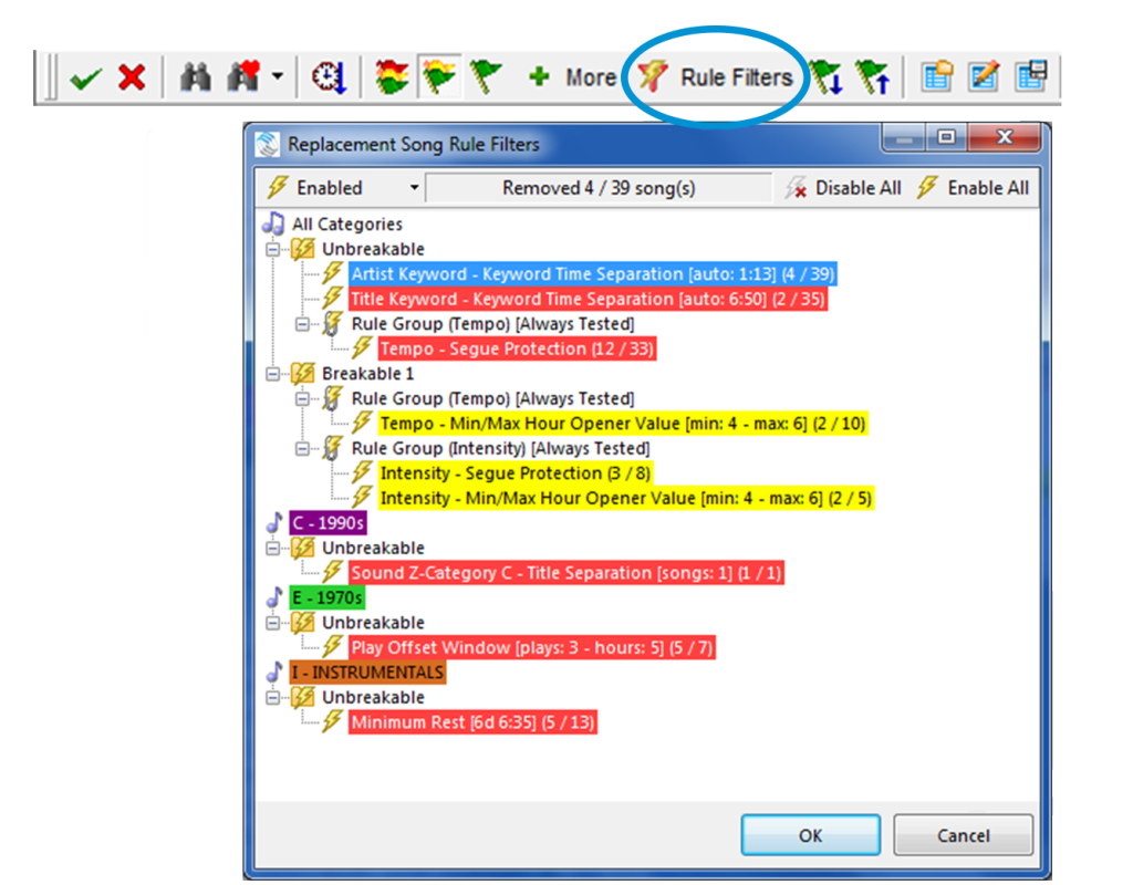 Recently clients have asked me if there was a way to make sure that they are always playing specific types of songs during certain parts of the day. As an example our friends to the North in Canada have to play a specific amount of Canadian content, some Latin countries face similar regulations, and other clients just want to make sure the hours aren’t leaning to urban, pop, rock, etc.