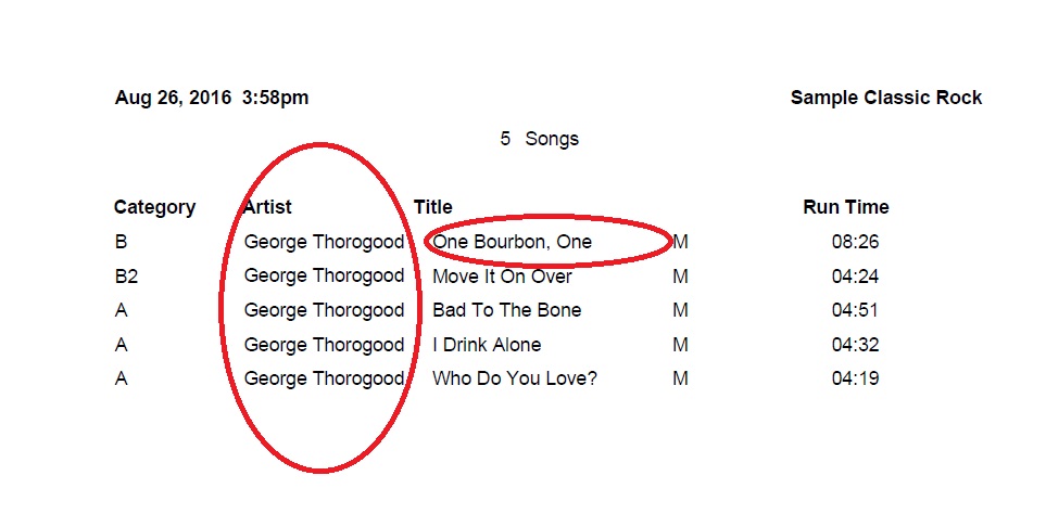 These options are pretty straight forward. Song Count is literally how many songs are in that category. Average Run Time is just that, the average length of the songs within that particular category. Finally Slot Count denotes how many “Slots” are in that particular category. Slot Count can be important to you if you use a lot of packets. You will note in the above example in Category B there are 117 songs in the category (Song Count) but only 108 Slots (Slot Count) because 9 of those songs are packeted in some form or another. These option give you a quick reference to information that may be specifically important to you.