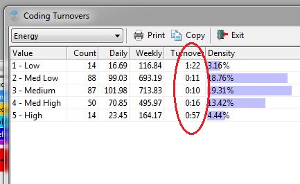 Contra es lo que estás comparando. ¿Quieres saber el total en comparación con el total de elementos en el registro, sólo elementos de la canción, o sólo los elementos de la canción programada? Escogeremos canciones programadas, y solo queremos contar las canciones de música. Me gusta ver la Cuenta / Total que nos dice cuántas baladas y qué porcentaje del registro que es igual. Podemos etiquetar esto y establecer umbrales bajos y altos como se desee.