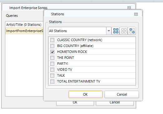 Now that the preliminary settings are in place, if a user decides to import songs from Enterprise, they can click on Import Enterprise Songs at the station level and proceed to find their desired songs for importing.