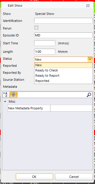 The Schedule Editor will also show the date and time when the Show was reported, who reported it, and what station it came from if it was imported from another source.
