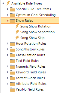Rules make Shows work intelligently by controlling how songs and keywords appear. There are three main types of rules to consider in your Rule tree.