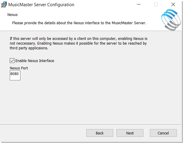Check the box and indicate the port. The port should be one not used for any other application. If you decide to enable Nexus later, you will be able to do so without re-running the installer file. You can do so through the Server Monitor Tray App. When opened, there is a tab for Nexus.