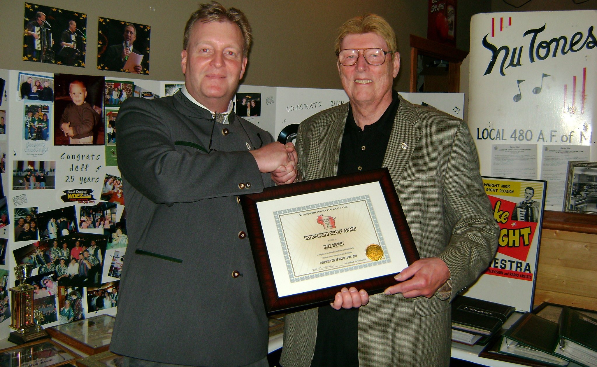 For his years of contributions to the art of polka, Duke received the Distinguished Service award from the Wisconsin Polka Hall of Fame in 2010.